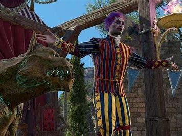 His initial appearance is a stark contrast to the macabre nature of the quest. He’s a jovial clown attempting to entertain the crowds with gags and acrobatics.  However, upon closer inspection, something seems amiss.