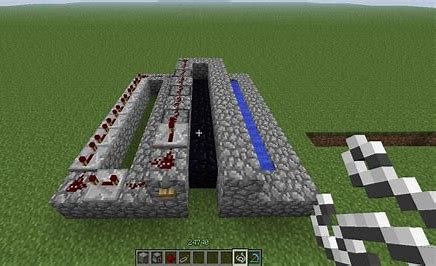 Important Note: Since water flows horizontally in older versions, the trapdoors ensure it only touches the stair block, allowing lava to reach and convert it into obsidian.
