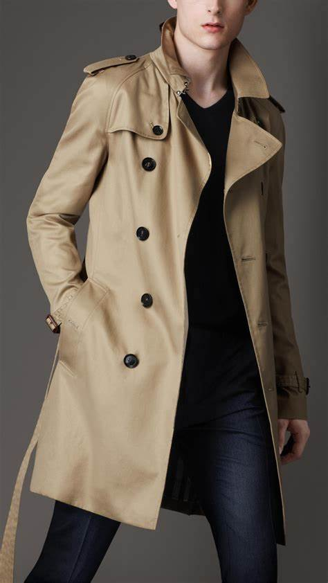 Trench Coat: A timeless classic, characterized by its belted waist, epaulettes, and storm flaps..