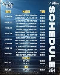 The schedule for the 2024 edition of the World Championship of Legends Cricket is expected to be packed with exciting fixtures. While exact dates can fluctuate based on television rights, venue availability, and player schedules, here’s what fans can generally expect: